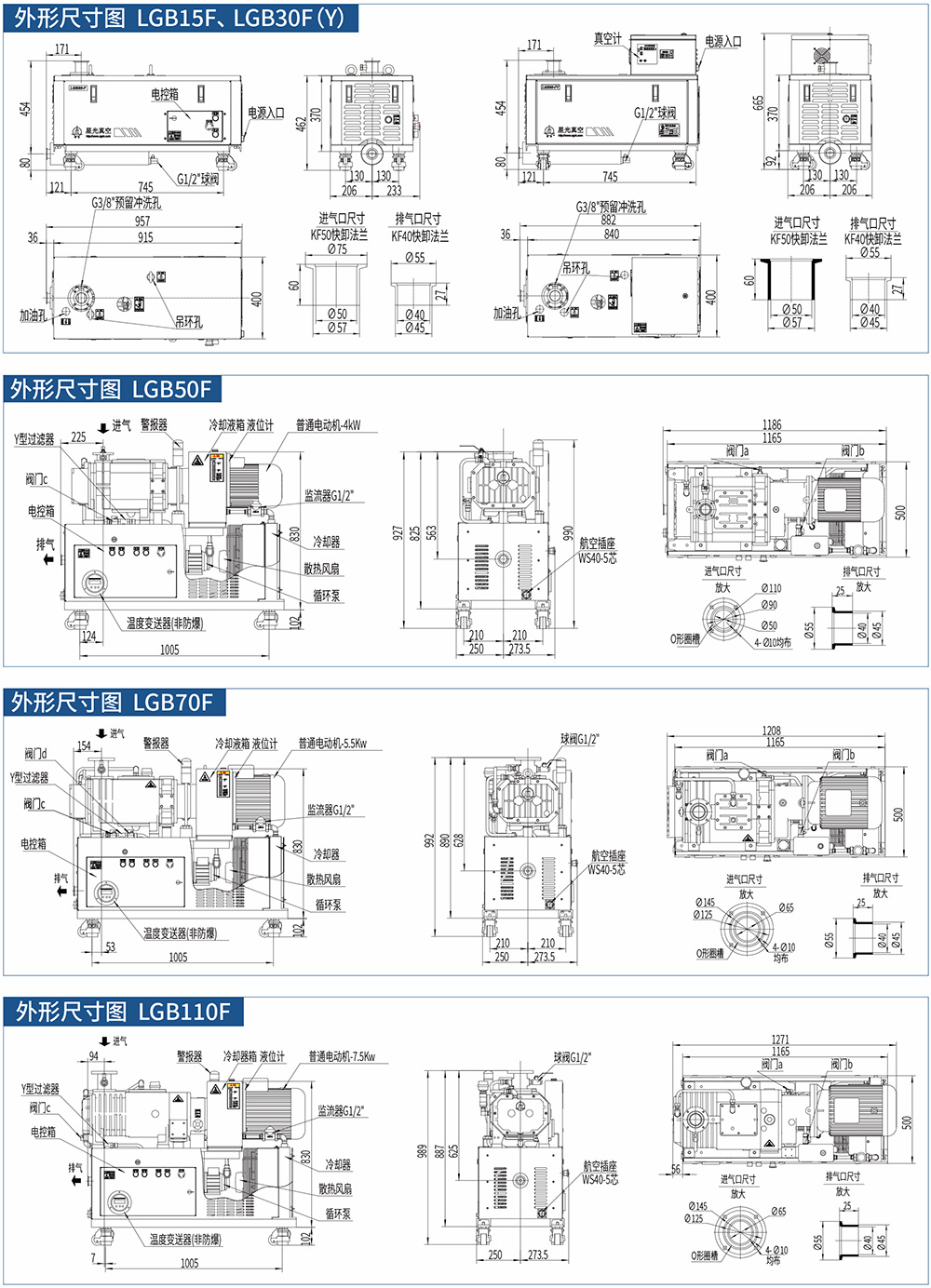 F系列風(fēng)冷干式螺桿真空泵不依賴外部循環(huán)水,通過自身獨(dú)特的風(fēng)冷降溫(LGB30F/LGB30FY)或冷凍液循環(huán)降溫(LGB70F/LGB110F)系統(tǒng)來完成熱量交換,保證了真空泵的可靠、長(zhǎng)期運(yùn)行,是一次技術(shù)上的極大革新。