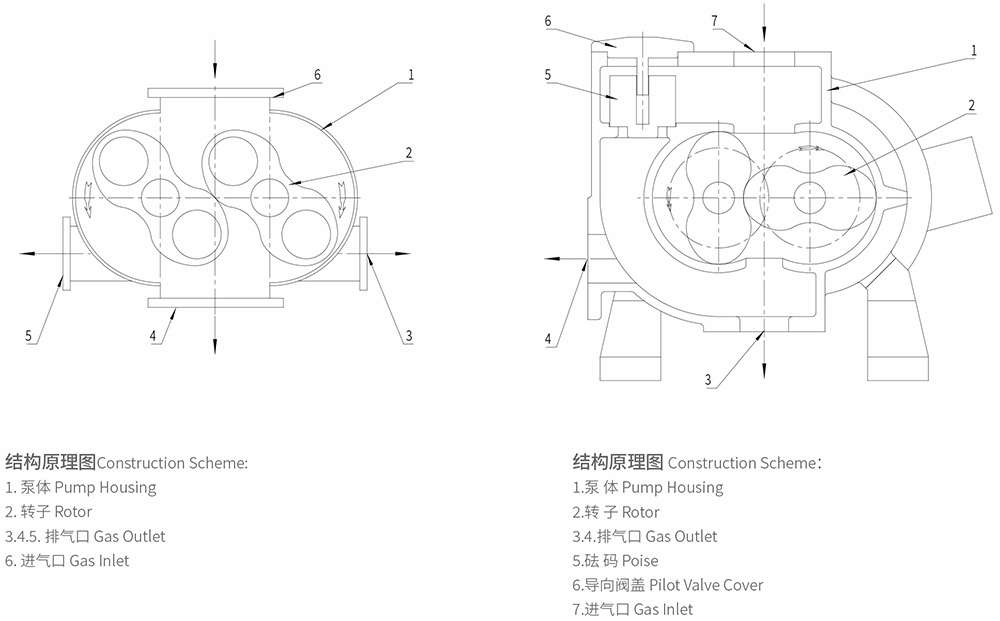 羅茨真空泵,由于采用數(shù)控加工中心加工,泵體與側(cè)蓋,側(cè)蓋與端蓋之間都采用“O”型圈密封,圓柱銷定位,零件互換性能好,維修方便,泵采用一個(gè)進(jìn)氣口,三個(gè)排氣口的結(jié)構(gòu)設(shè)計(jì),便于用戶安裝使用。羅茨泵不能單獨(dú)使用,只有串聯(lián)前級(jí)泵才能使用,可選擇螺桿泵、油封泵、液環(huán)泵作為前級(jí)泵,值得一提的是,當(dāng)選用螺桿泵、液環(huán)泵作為前級(jí)泵時(shí),特別適合抽除大量可凝性氣體的場(chǎng)合。